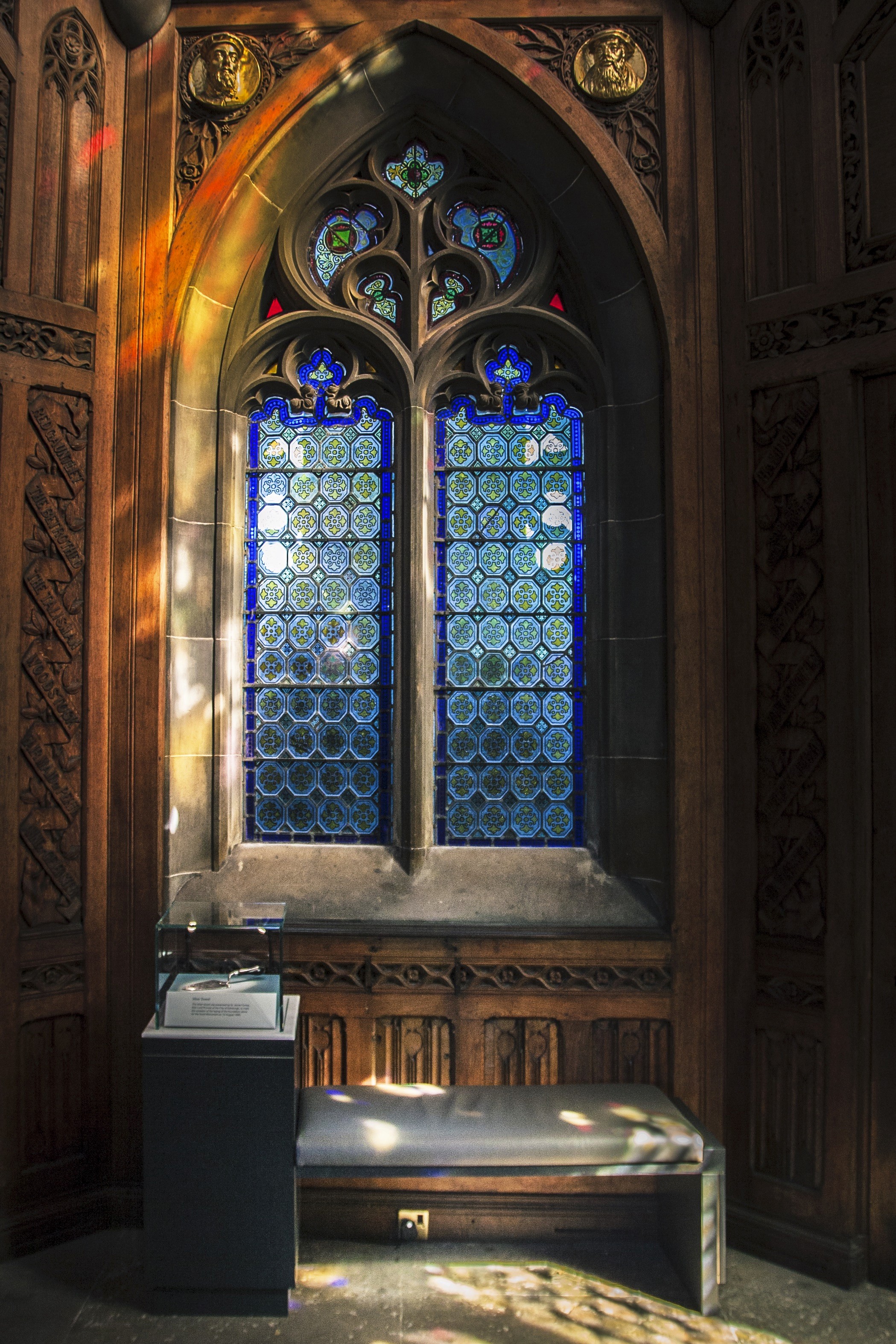 The new suite of furniture combines functionality and style, incorporating seating, glass display cabinets, touch-screen displays, and lightbox interpretation panels. Each piece was carefully engineered to dismantle into small sections, enabling transportation through the narrow spiral staircase and compact doorways—an intricate challenge that required precise planning and craftsmanship.