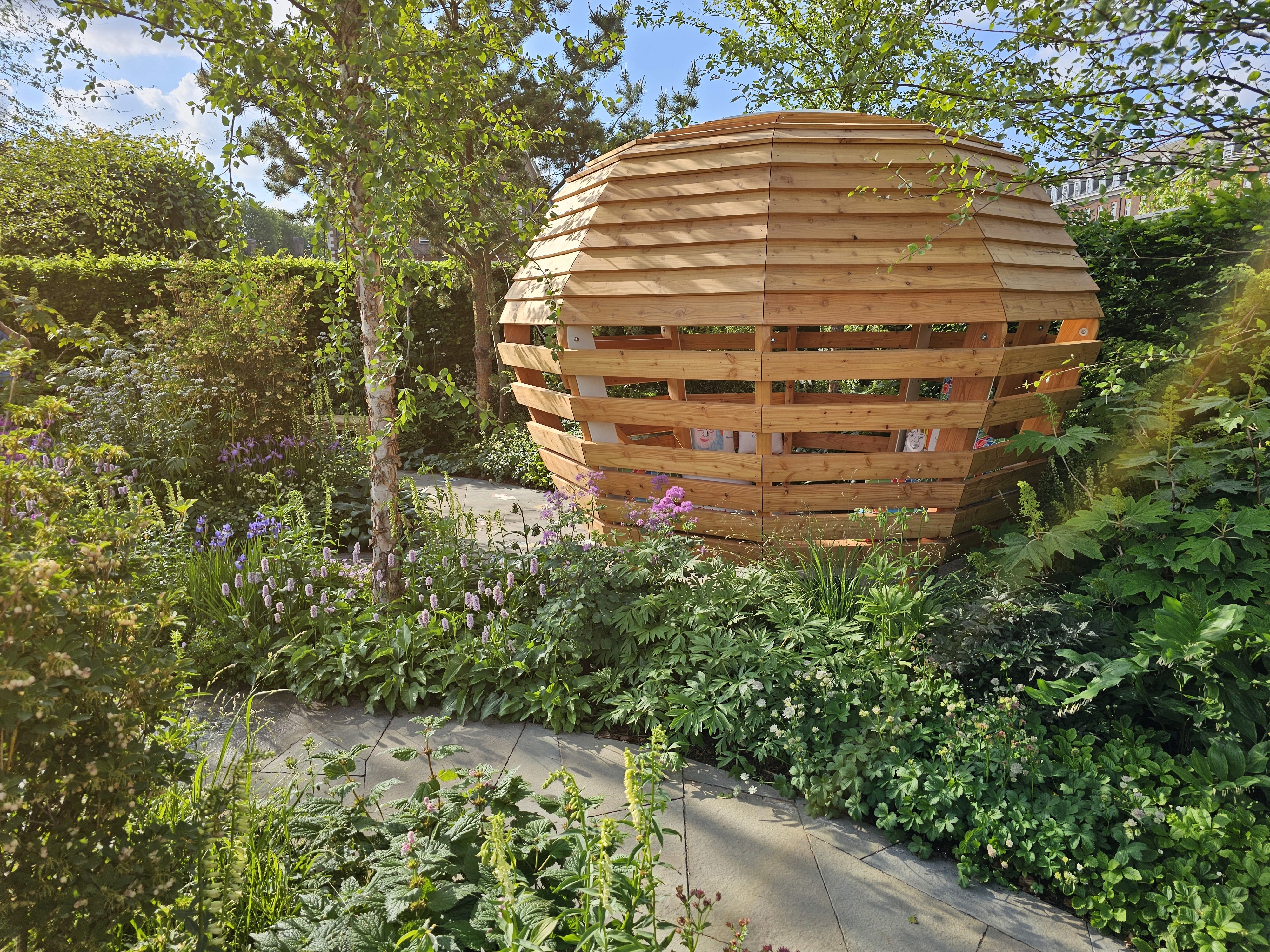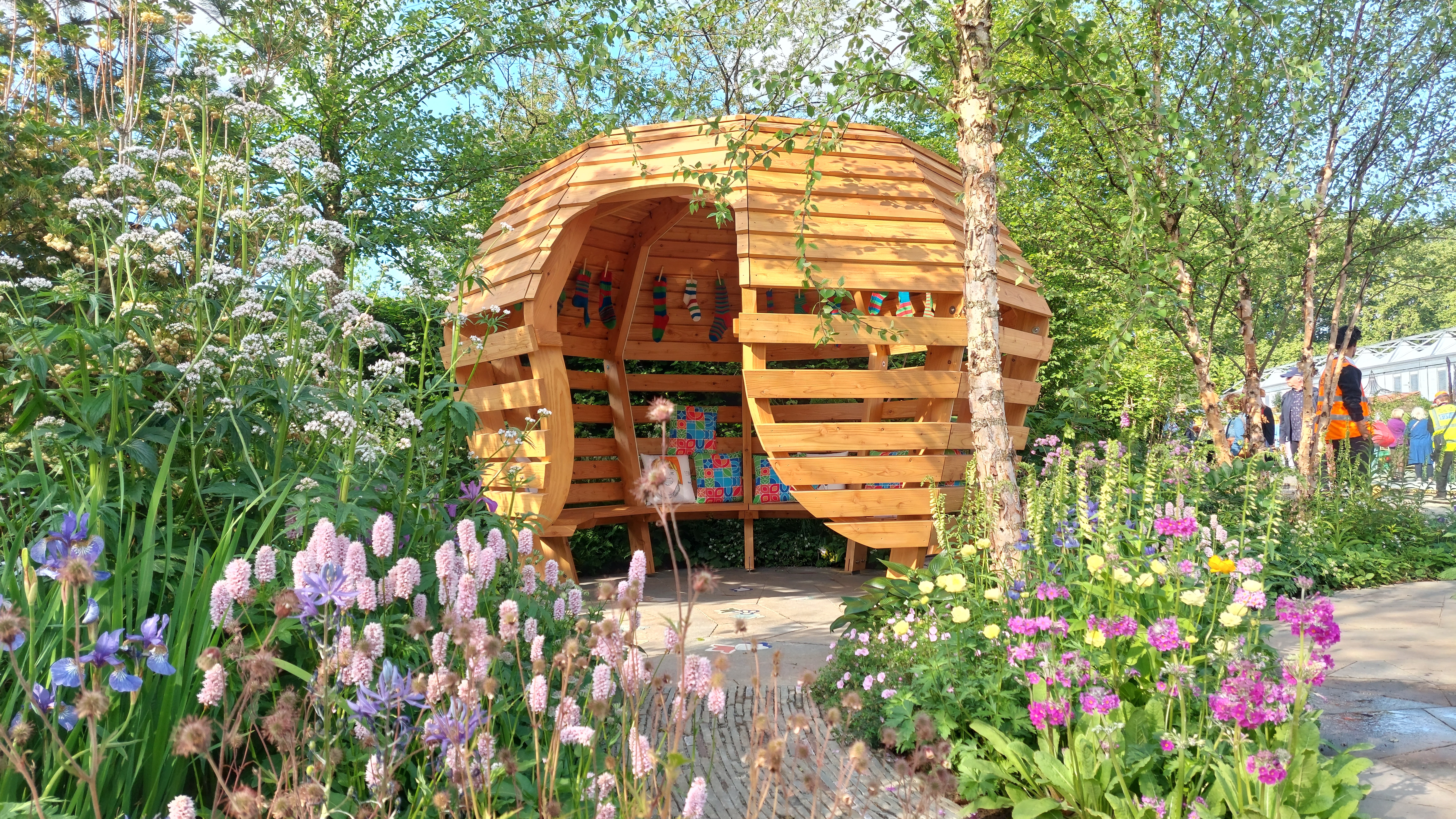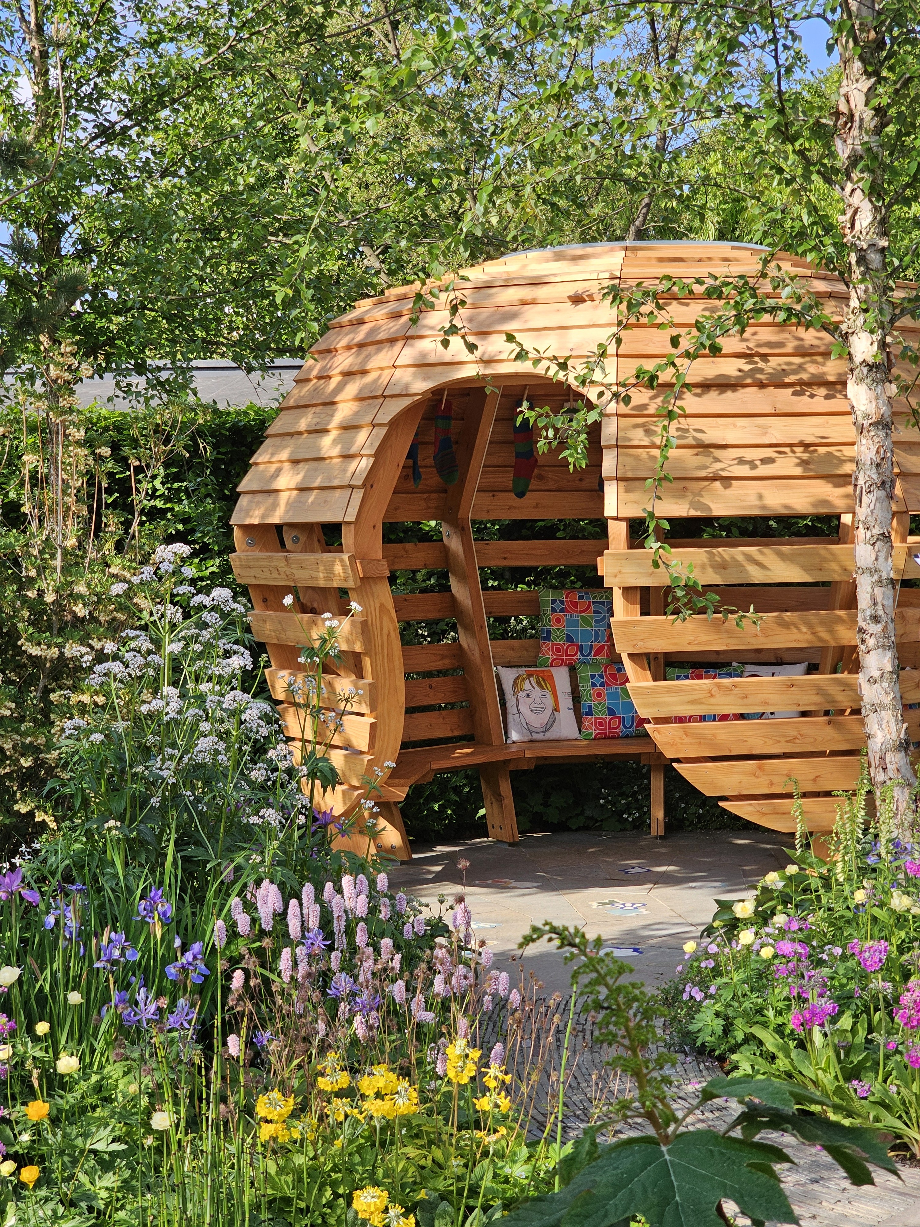 A SENSITIVE AND EMBRACING OUTDOOR SHELTER AS PART OF THE DOWN’S SYNDROME SCOTLAND GARDEN FOR THE RHS CHELSEA FLOWER SHOW